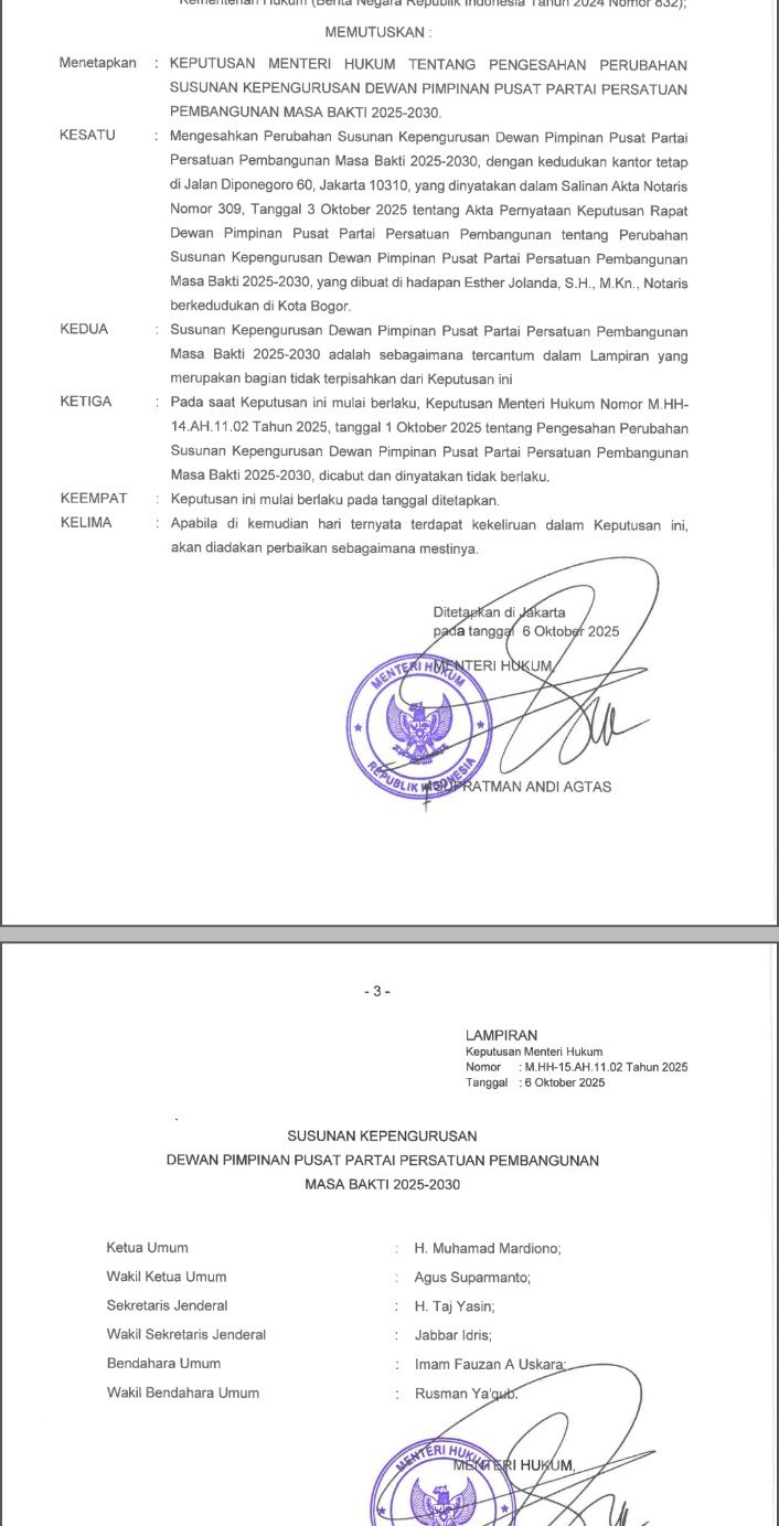 BUTOTA – POLITIK | Sekretaris Jenderal (Sekjen) DPP Partai Persatuan Pembangunan (PPP) Taj Yasin Maimoen mengeluarkan memo internal, yang ditujukan kepada Ketua Umum DPP PPP Muhammad Mardiono serta seluruh Kepala Daerah dan Pimpinan DPRD di tingkat Provinsi dan Kabupaten/Kota se-Indonesia.